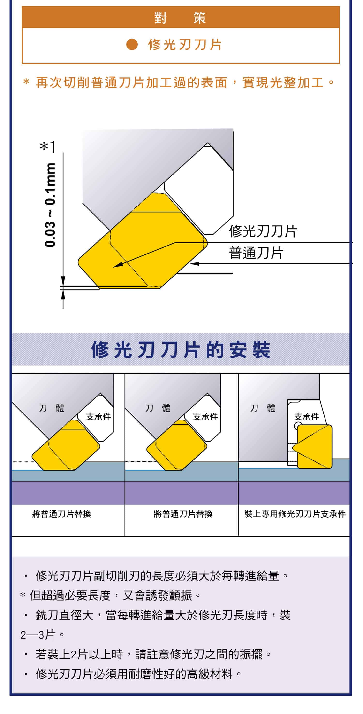 平面銑削的表面粗度,切削刃振擺精度示意圖,表面粗糙度示意圖,修光刃刀片的安裝