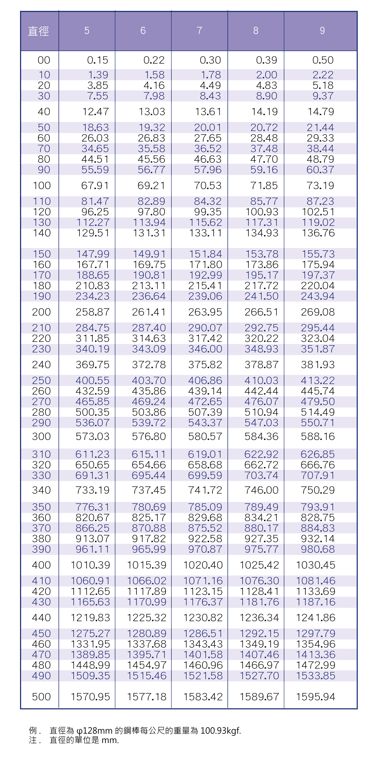 各種鋼材的重量表,材質的密度表,各種斷面形狀的鋼材重量表,各種尺寸鋼棒重量表