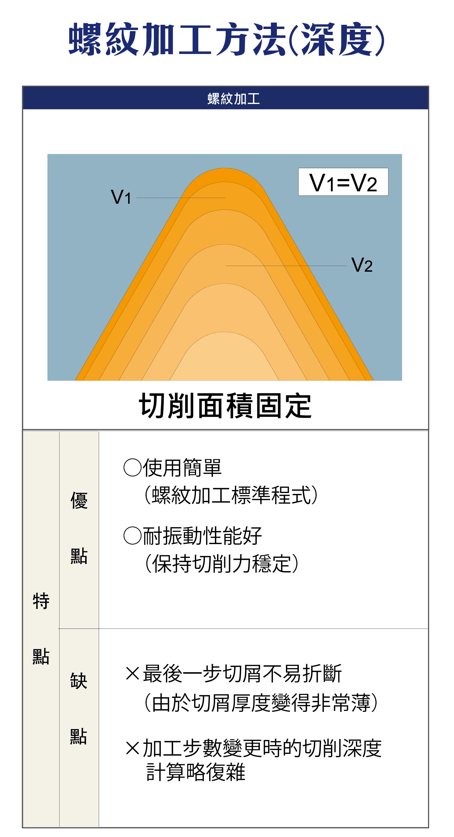 螺紋加工的方法,深度篇,切削面積固定的優缺點,切削深度固定的優缺點,如何算出切削面積固定時的深度,切削橫切和深度的考量