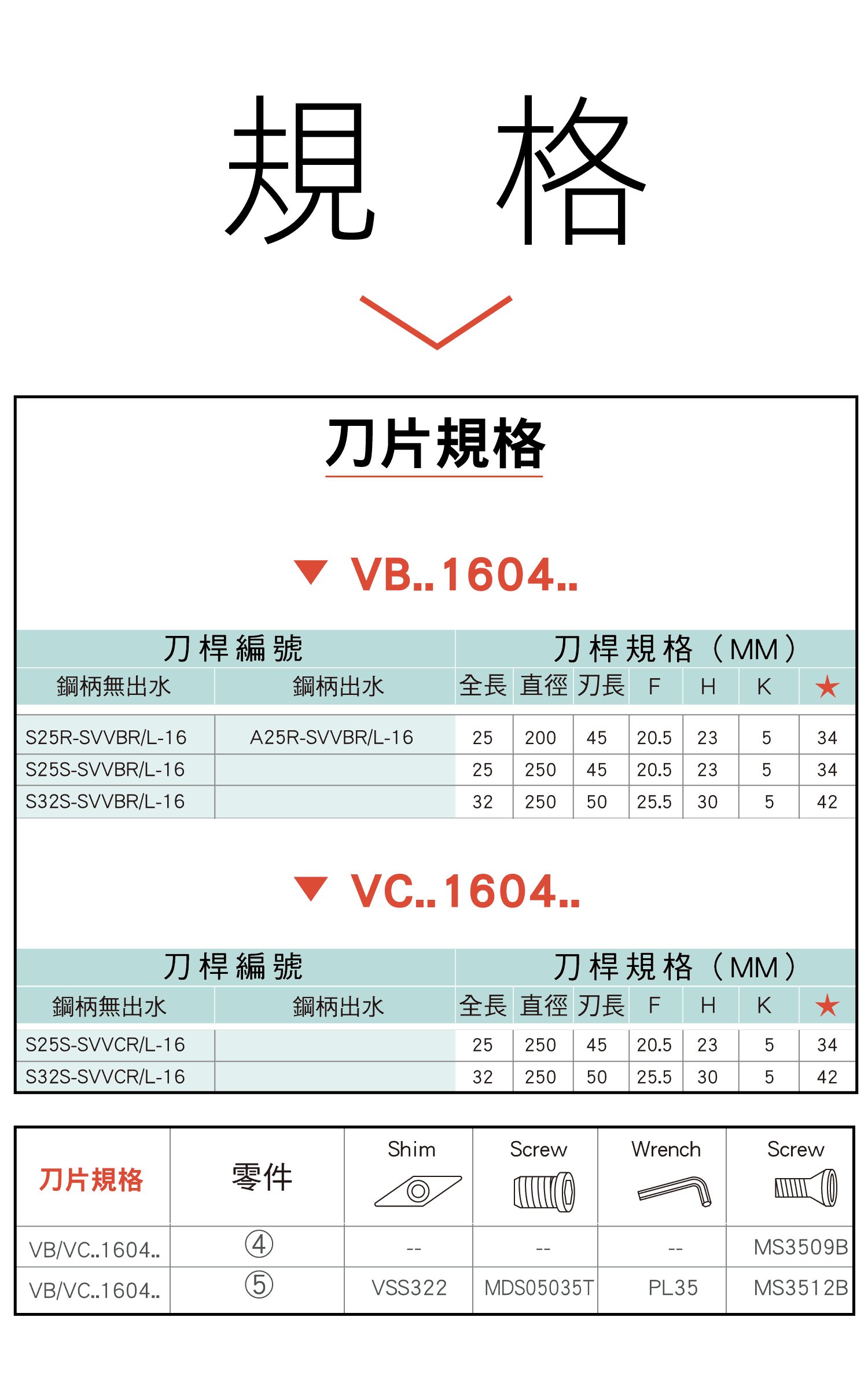 • 內徑車刀|35°菱形刀片|VB/VC系列刀片|SVVB/C