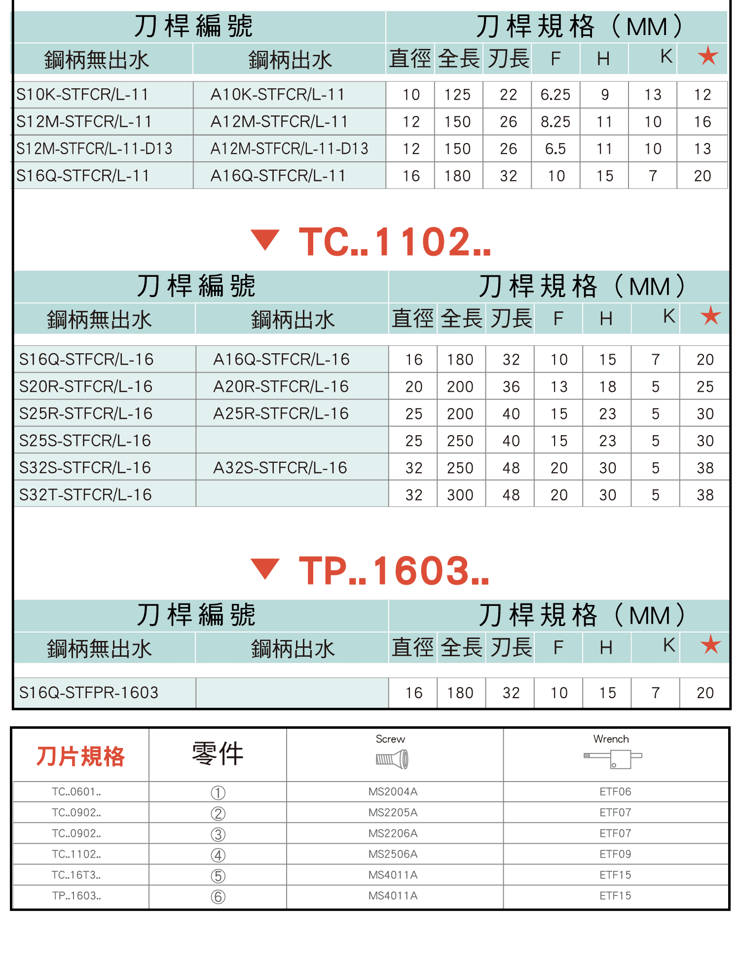 內徑車刀|60°三角刀片|TC/TP系列刀片|STFC/P
