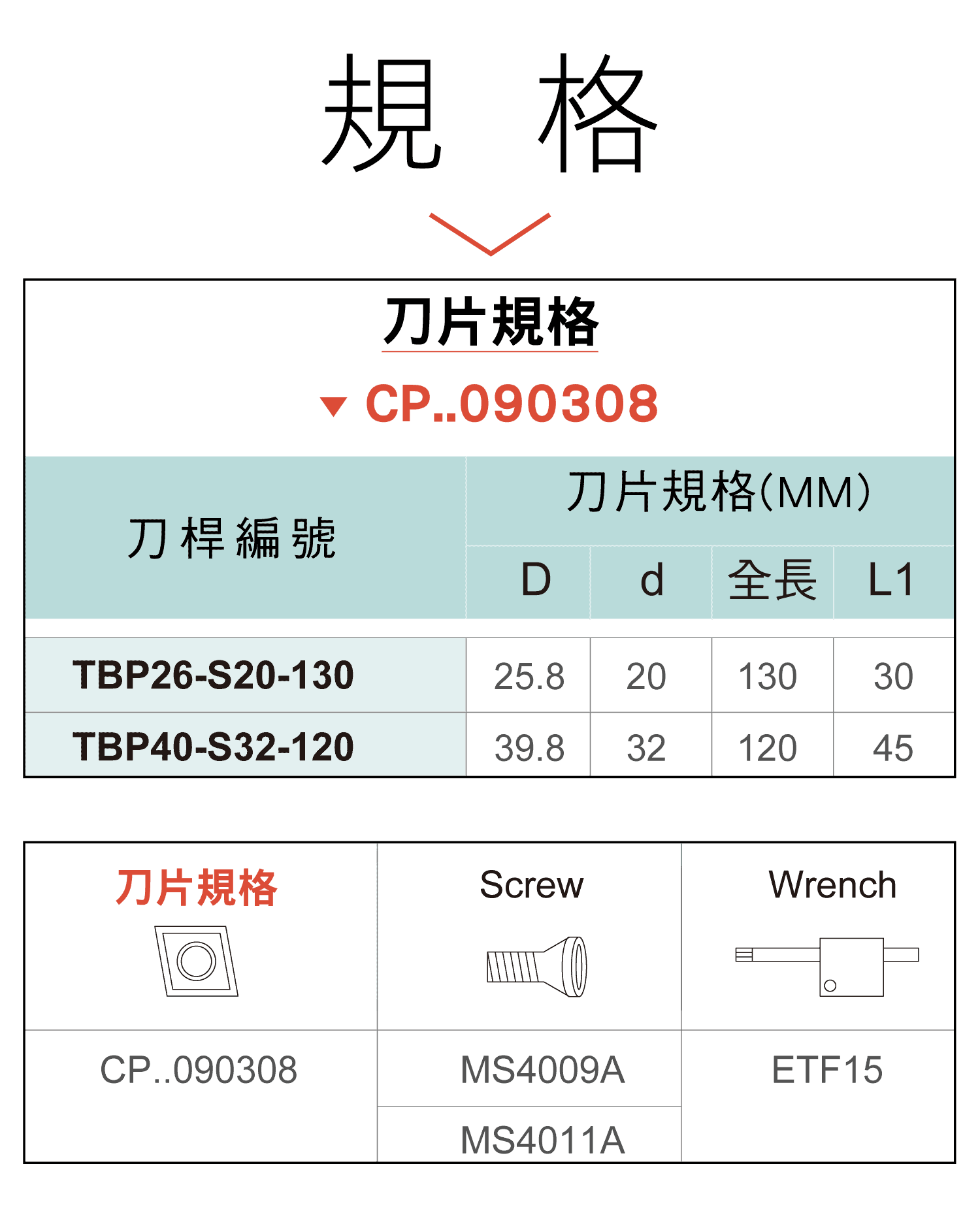 固定式粗搪刀刀桿|雙刃型切削|CC系列刀片|TBP