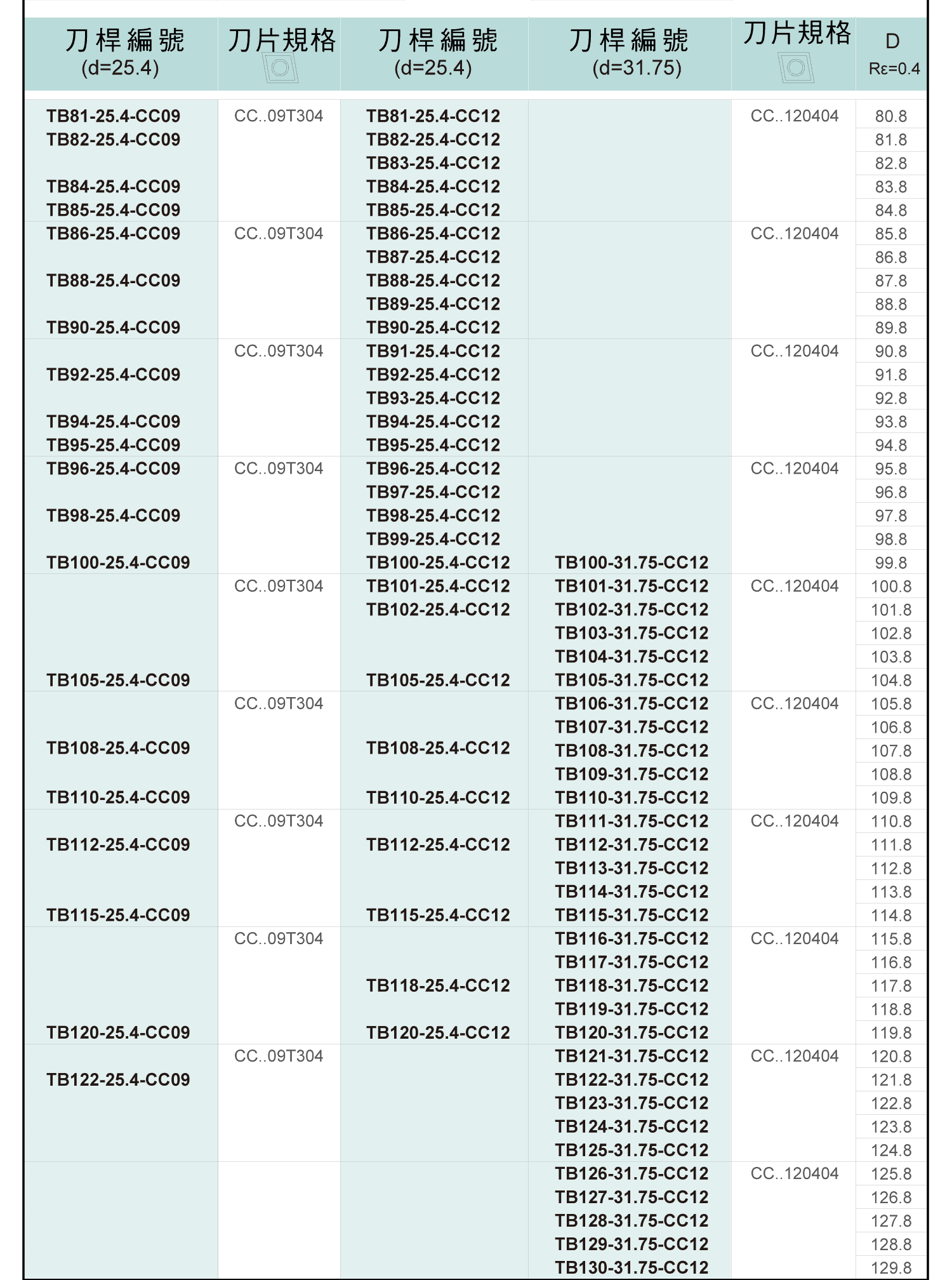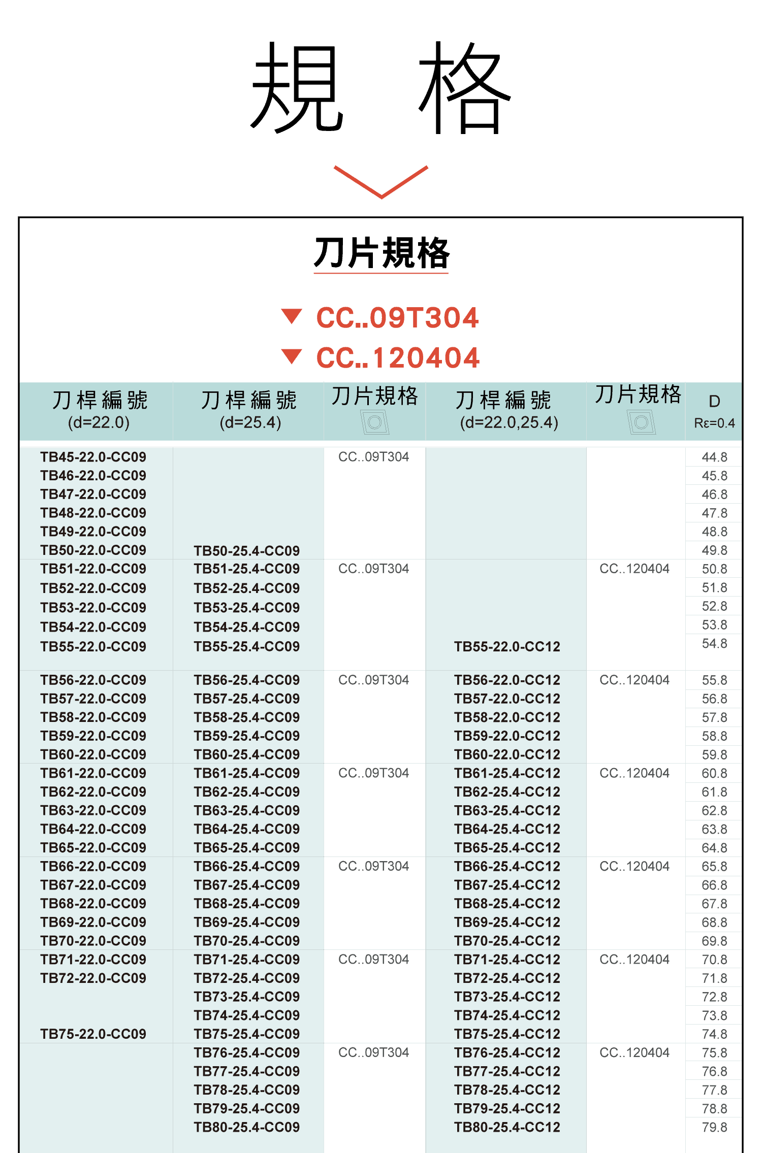 固定式粗搪刀刀碗|雙刃型切削|CC系列刀片|TB