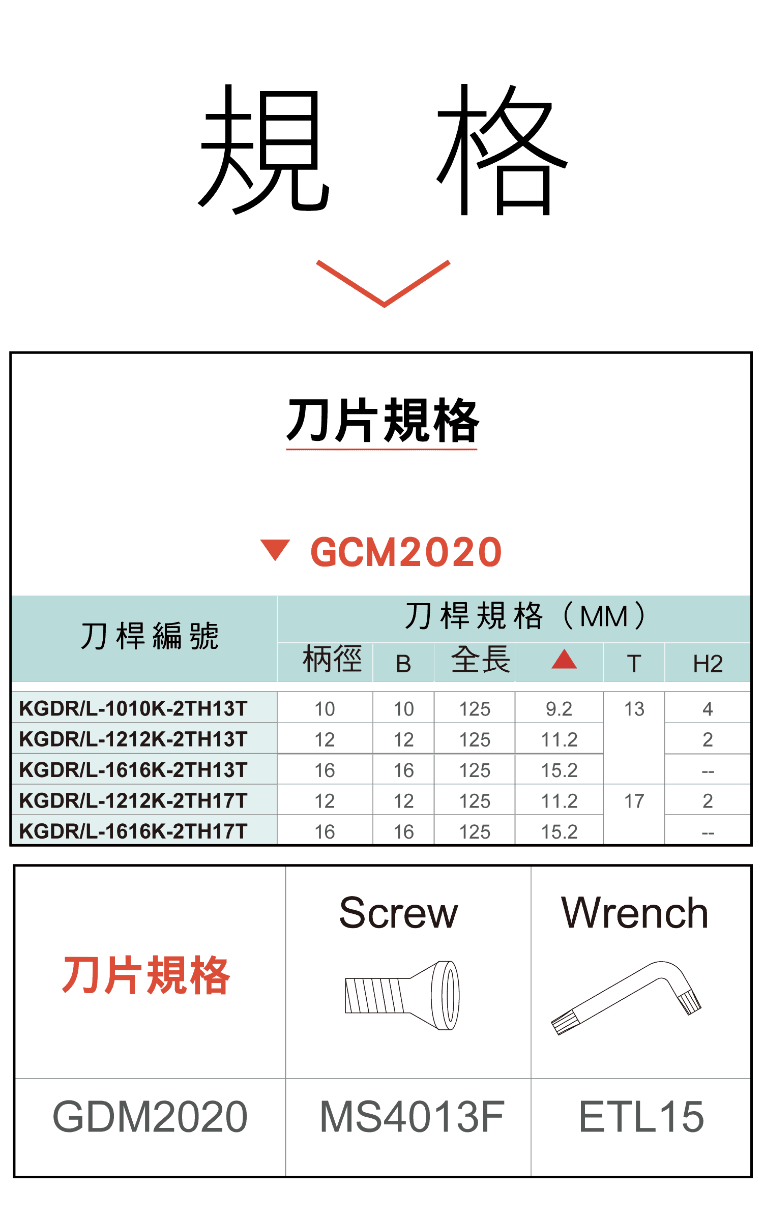 外徑切槽刀|外徑切削|GCM2020刀片|KGD..LH
