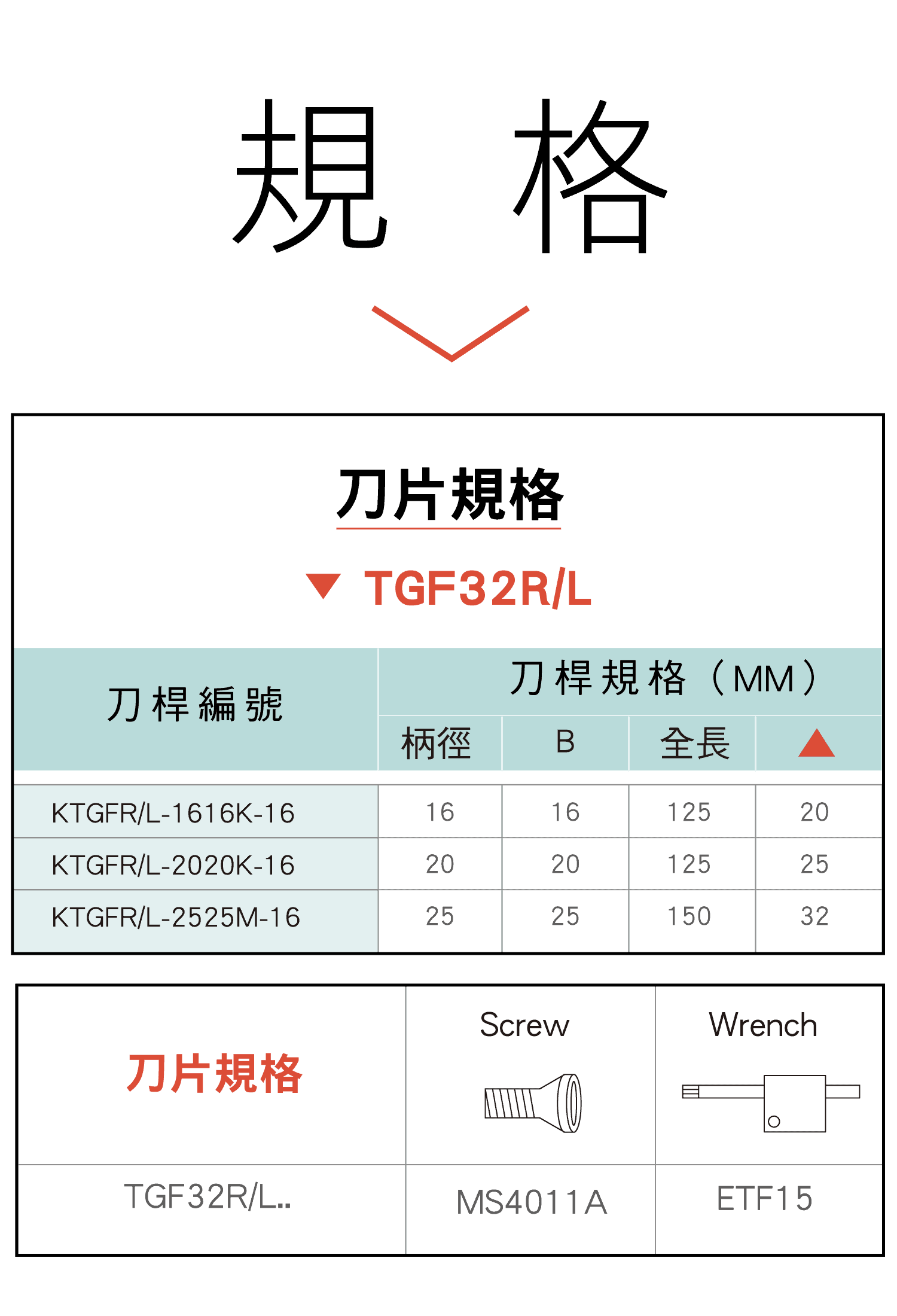 外徑切槽刀|外徑切削|TGF32R/L刀片|KTGF_F