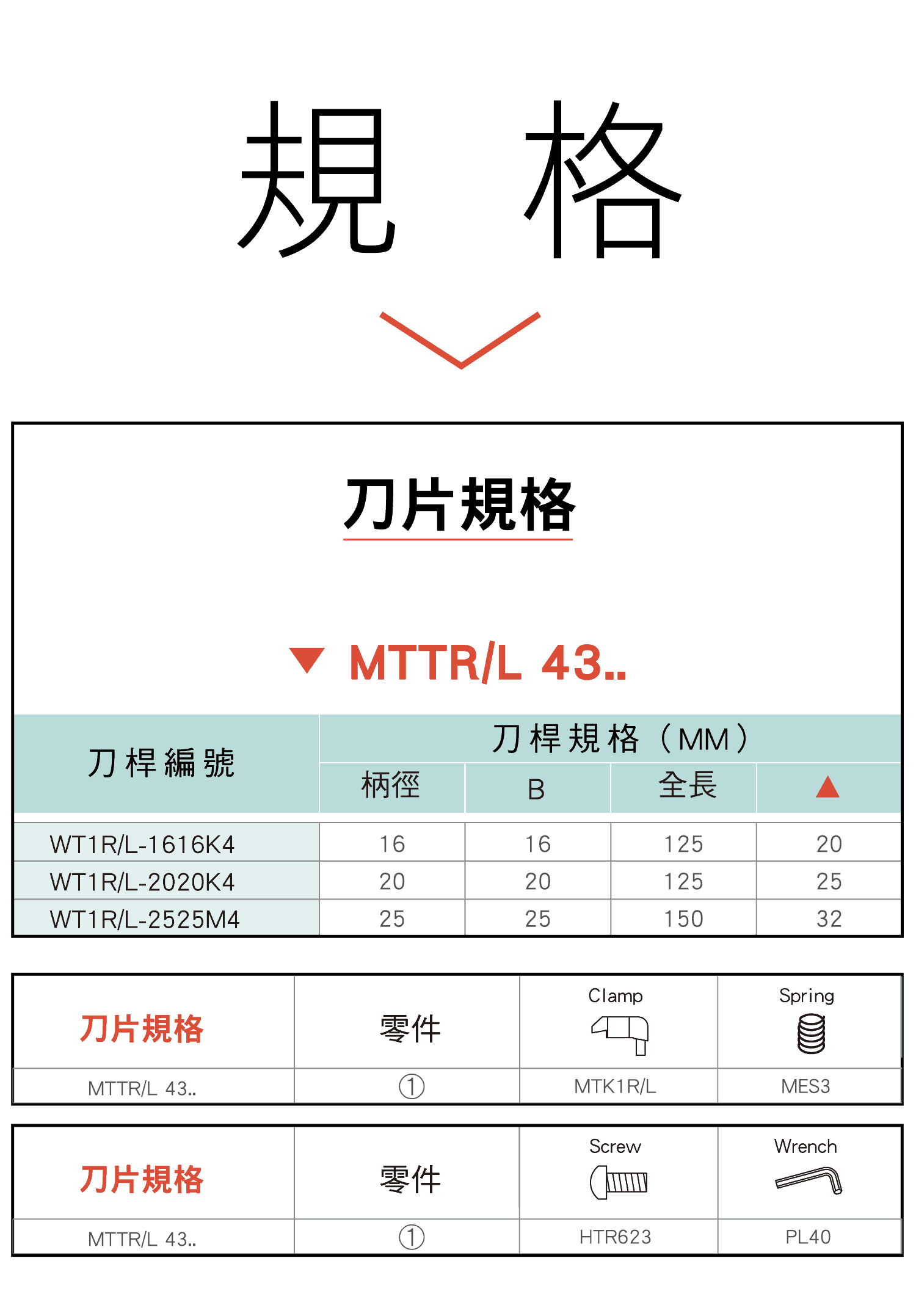 外徑牙刀|外徑切削|MTTR/L刀片|WT1
