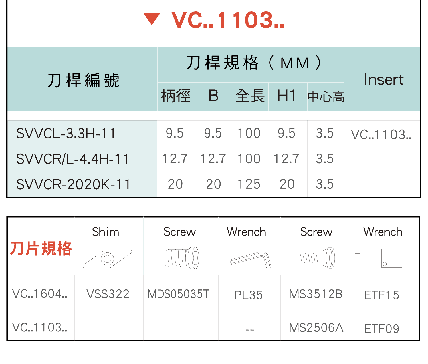 外徑車刀|35°菱形刀片|VC系列刀片|SVVC