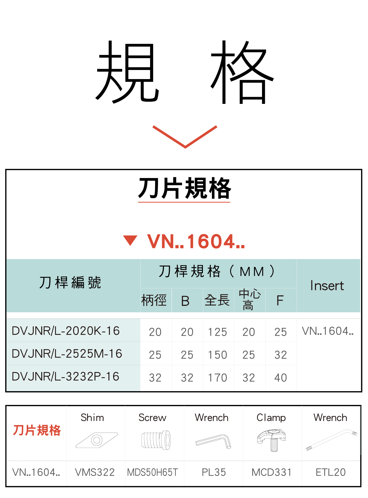 外徑車刀|35°菱形刀片|VN1604刀片|DVJN