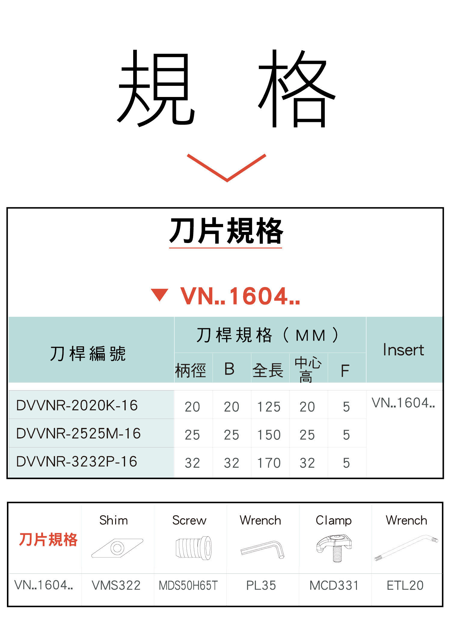 • 外徑車刀|35°菱形刀片|VN1604刀片|DVVNN