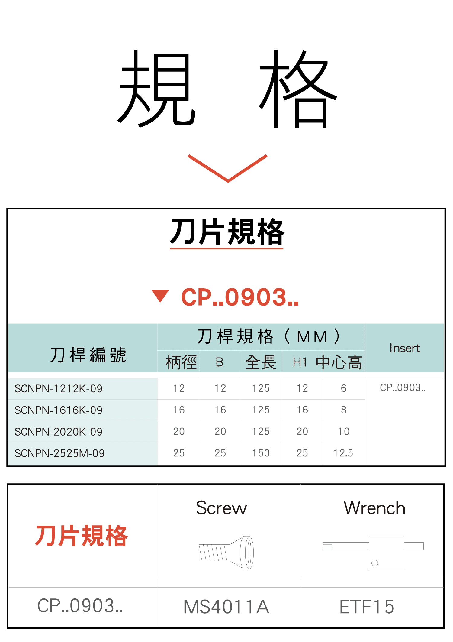 • 外徑車刀|80°四角刀片|CP系列刀片|SCNC