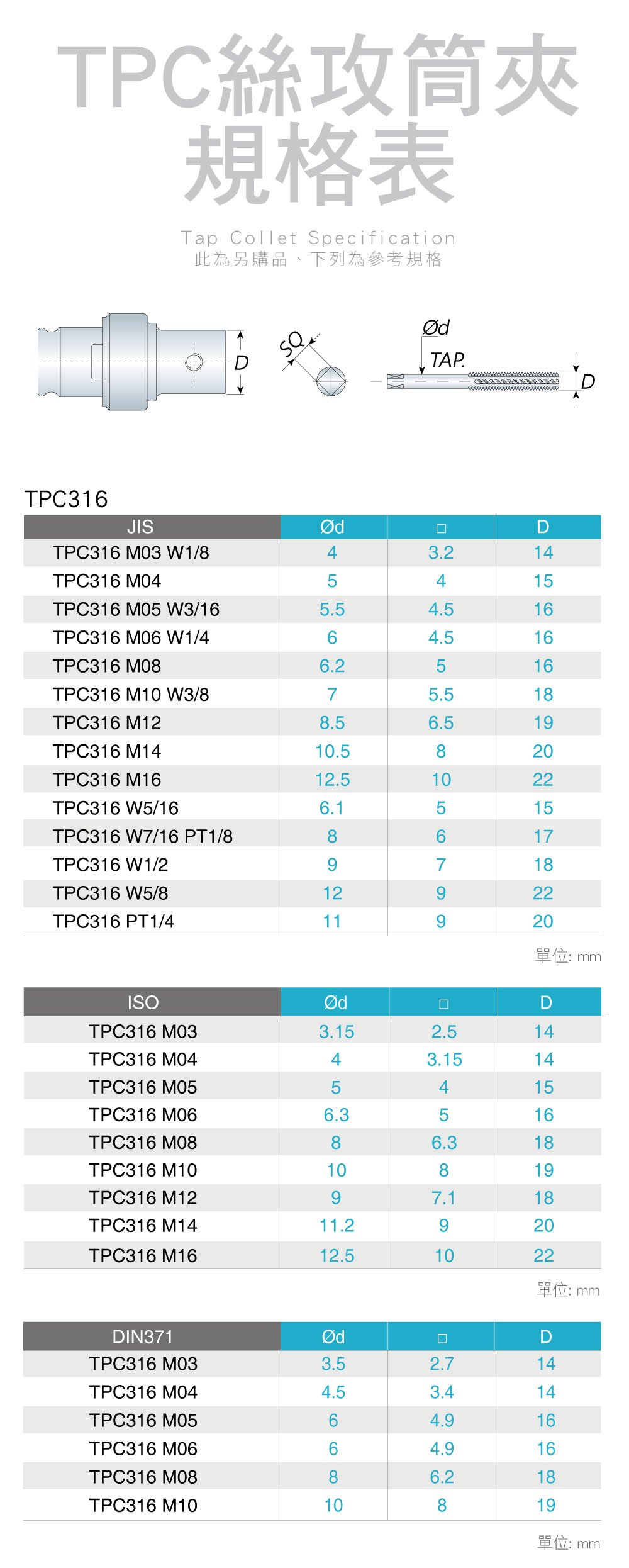 絲攻筒夾規格表|TPC|筒夾|規格表