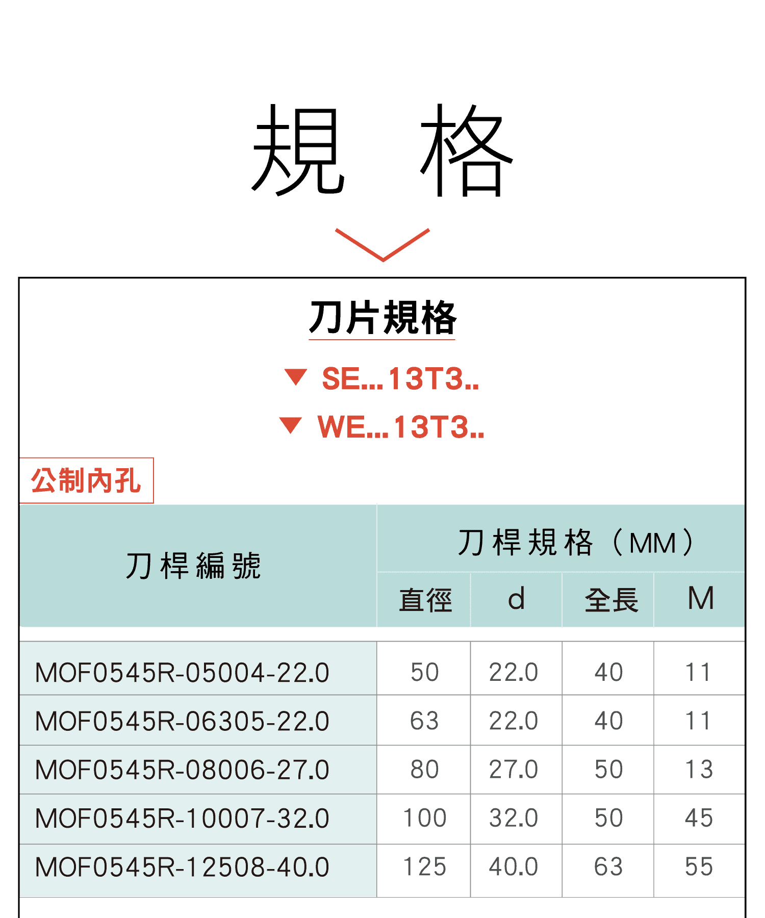 銑刀刀碗|45°角切削|SE/WE刀片|MOF