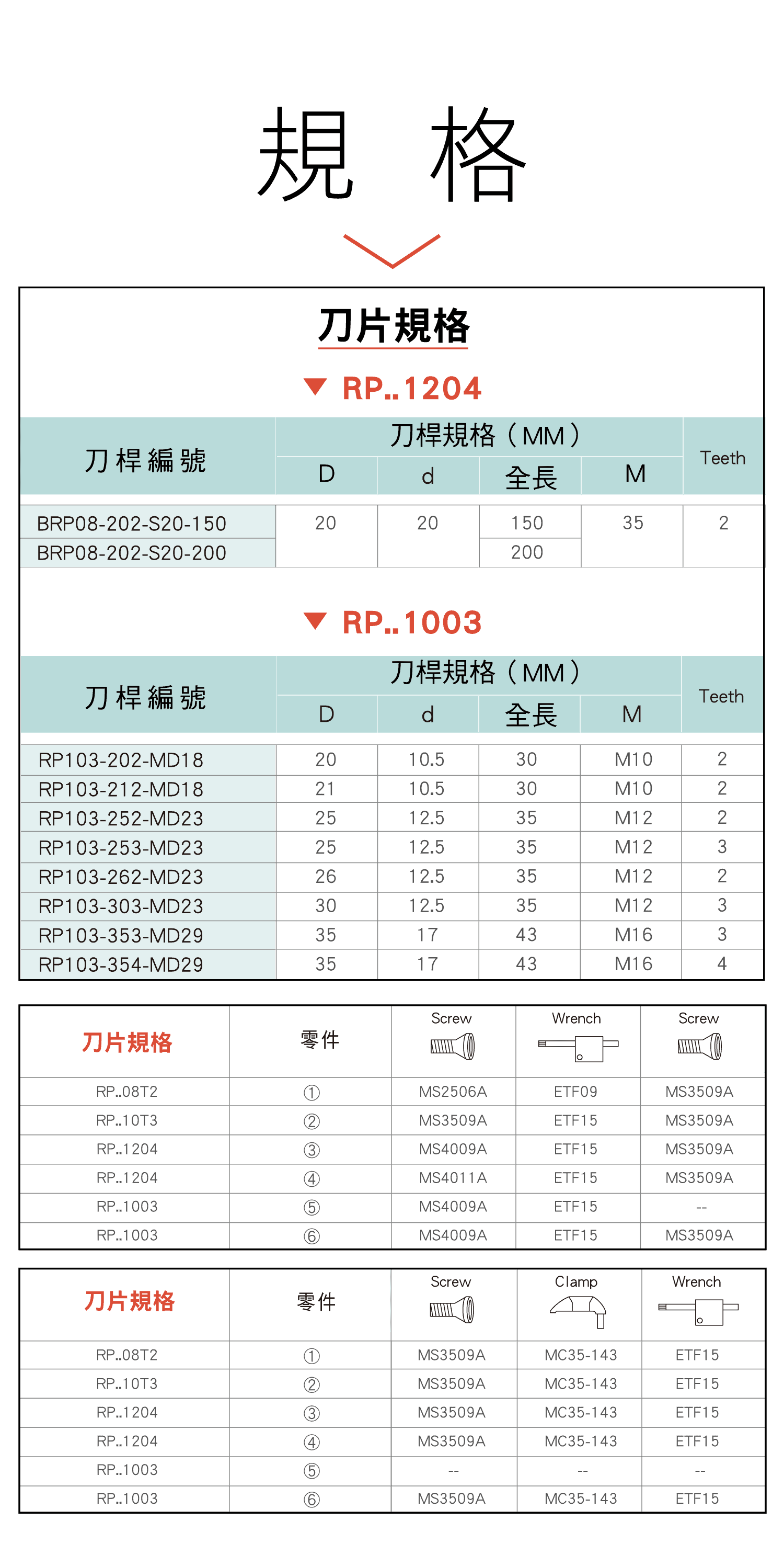 • 銑刀刀桿|圓刃切削|RP刀片|BRP