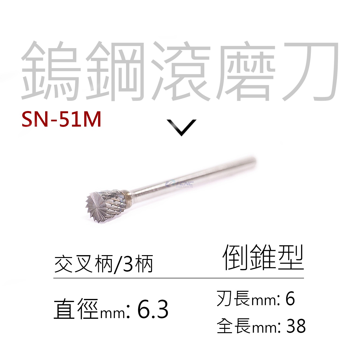 鎢鋼滾磨刀 | 美國製 單支【倒錐型】