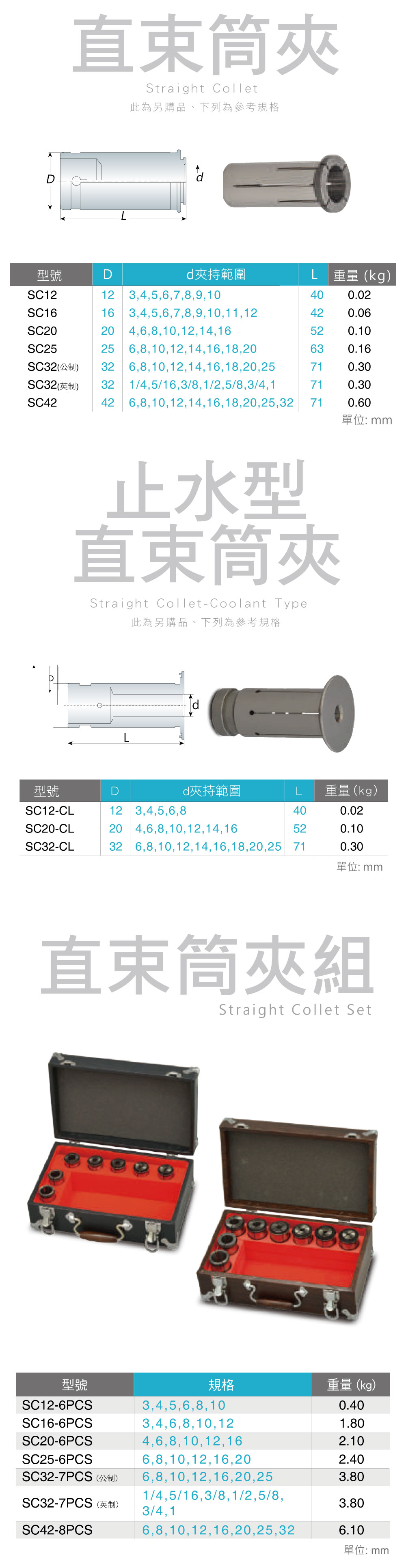 ASC_直束筒夾組|SC通用|直筒夾|公制/英制