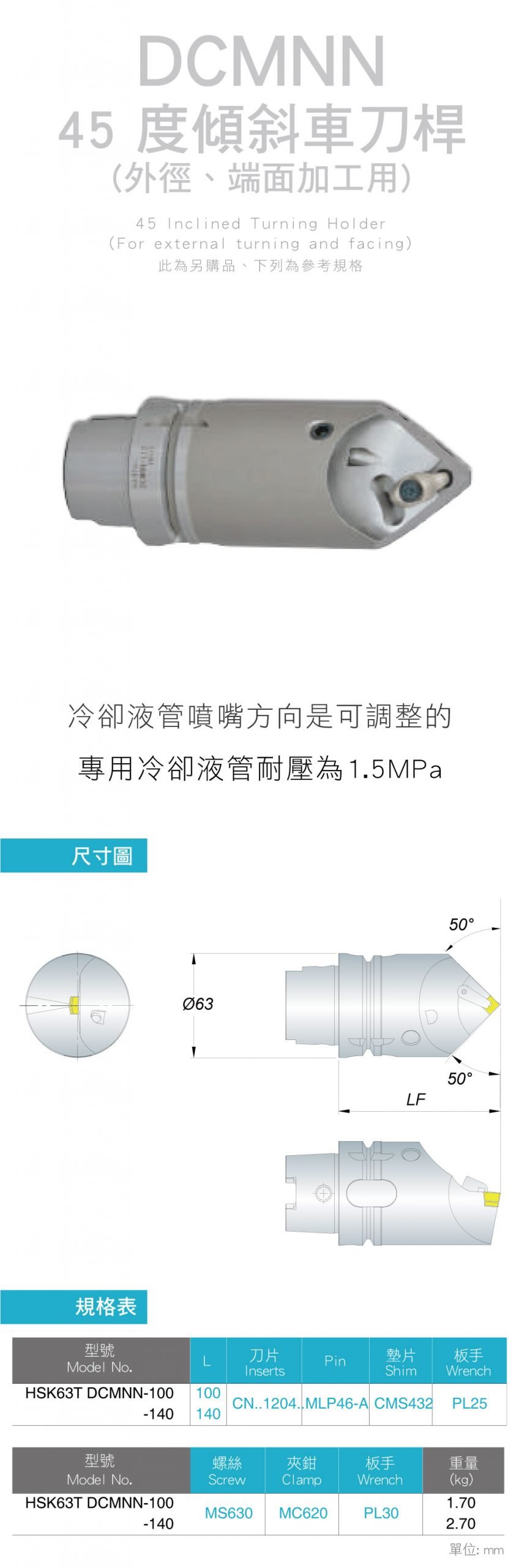 DCMNN 45度傾斜車刀桿|外徑 、 端面加工用|DCMNN|刀桿