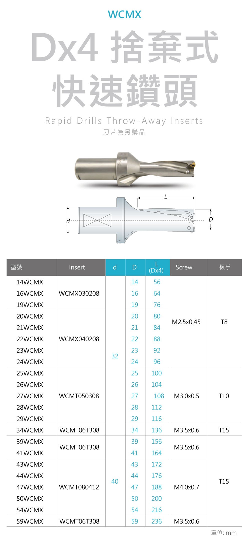 WCMX Dx4捨棄式快速鑽頭|WCMX|Dx4|鑽頭